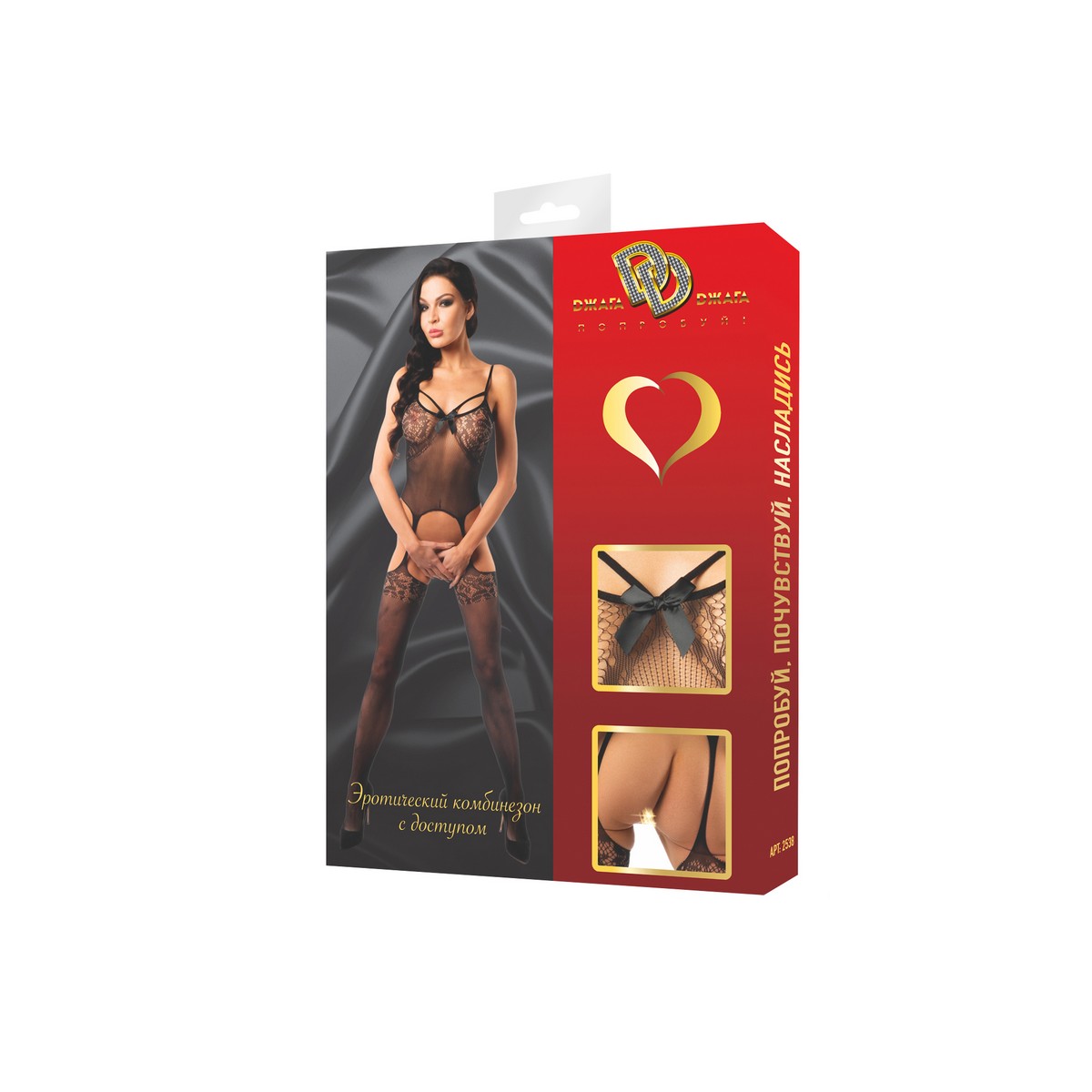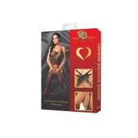 Очаровательный комплект черного цвета, состоящий из  чулок на пажах  и топа на тонких лямках. Украшен атласным бантом в зоне декольте. Кэтсьюит выполнен из невероятно мягкой мелкой сеточки. Цветочный орнамент на груди и в виде каймы на чулках.  Модель  облегает тело и подчеркивает его сексуальность, он демонстрирует многое, но скрывает самое главное. Такой наряд будоражит фантазию  и не мешает партнерам наслаждаться любовными утехами.
