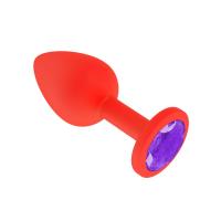 Анальная втулка силиконовая красная с фиолетовым кристаллом маленькая (517-08 PR DD)