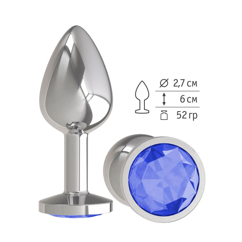 Анальная втулка Silver с синим кристаллом маленькая (513-07 BL DD)